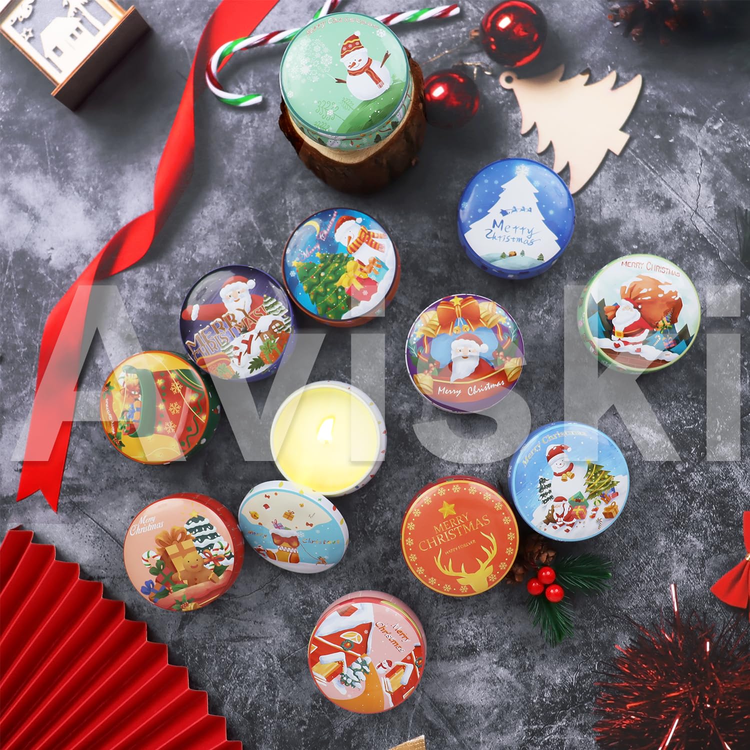 - 【12 CLASSIC POPULAR & CHRISTMAS-Y FRAGRANCES】Our Christmas candle giftset come with 12 Fragrance Scents: Ginger Juice, Fennel, Freesia, Vanilla, Frankincense and Myrrh, Pumpkin, Cinnamon, Cedar and Berries, Mint Chocolate, Caramel Apple, and Oranges and Spices& Sweet Almond. Christmas scents improve Christmas atmosphere. Releasing your tension and promoting feelings of relaxation, preparing you for a better night's sleep. You can look at the bottom of the can to find out the scent of the candle.