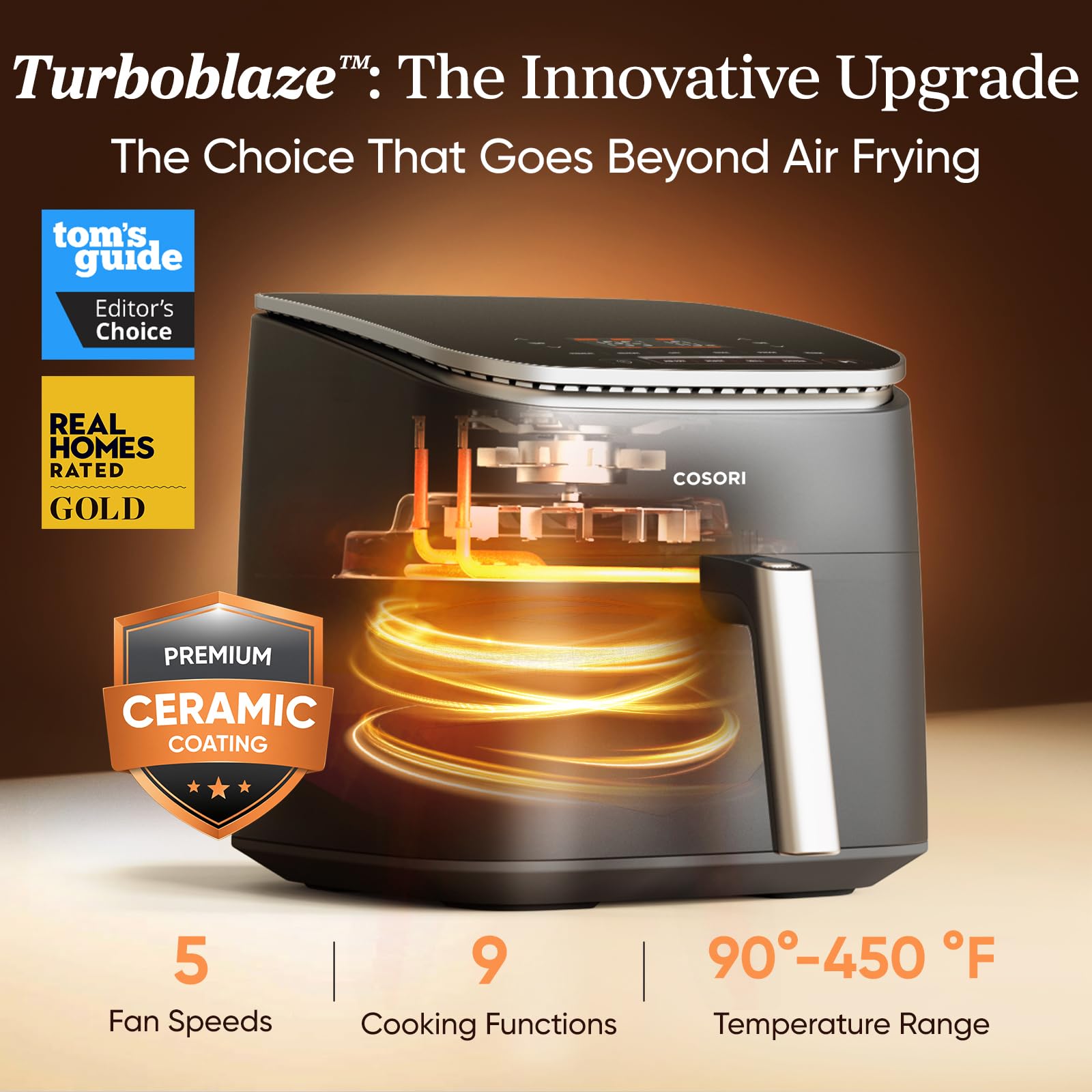 Cosori 9-in-1 TurboBlaze Air Fryer 6 Qt, Premium Ceramic Coating, 90ยฐโ450ยฐF, Precise Heating for Even Results, Air Fry, Roast, Bake, Broil, Dry, Frozen, Proof, Reheat, Keep Warm, 120V, Dark Gray