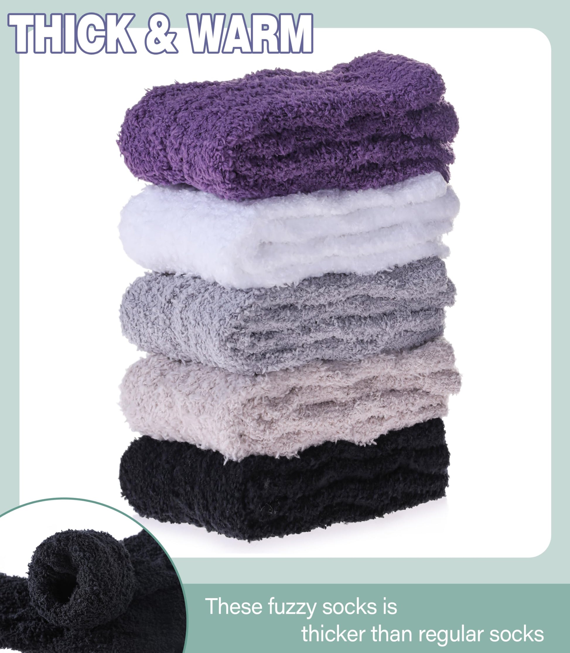 DOSKONI Fuzzy Socks for Women Fluffy Slipper Socks Cozy Winter Warm Soft Microfiber Plush Home Sleeping Gift Socks 5 Pairs Color A