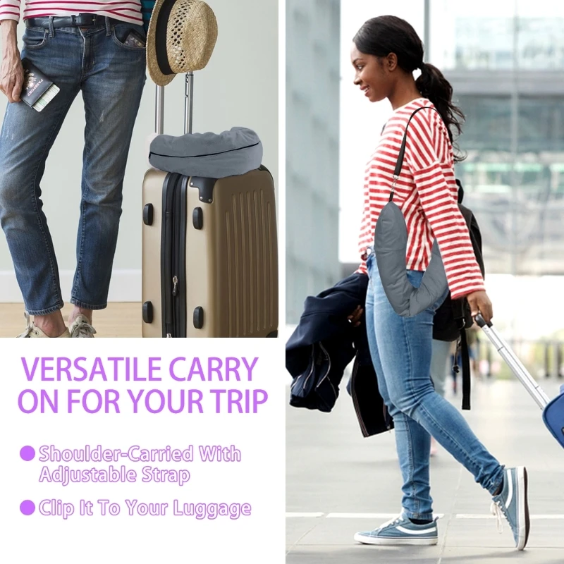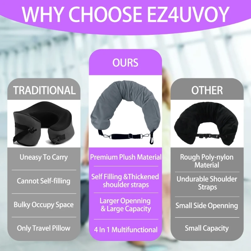 ✈️ What is it - Experience superior travel comfort with our Stuffable Travel Pillow Storage Bag! This innovative neck pillow allows you to pack soft items like clothes and towels, transforming them into a cozy support for your travels. Designed for durability and practicality, it's your essential travel companion.