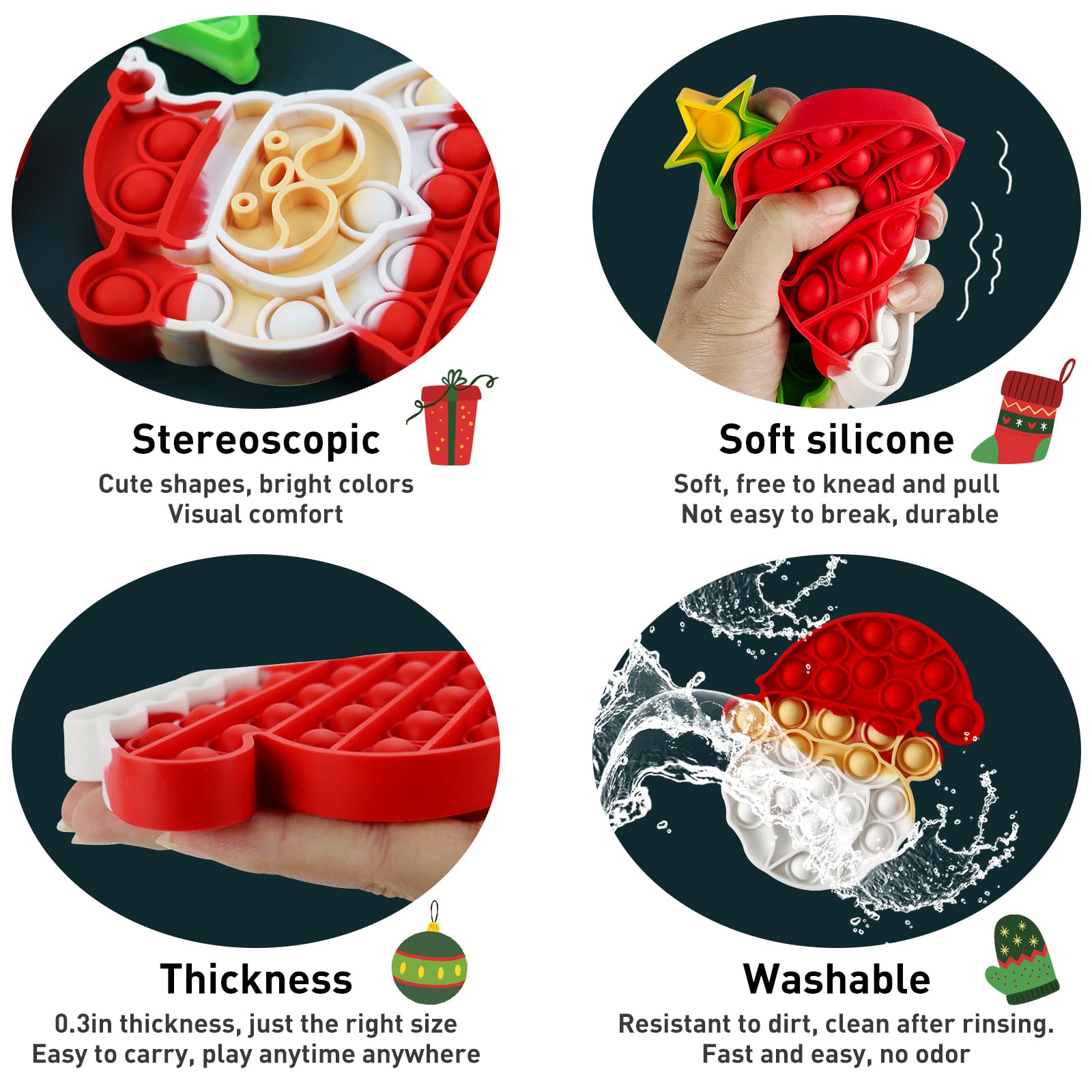 QETRABONE 6 Pcs Christmas Fidget Toy Set, Push Bubble Fidget Sensory Toy for Adult, Party Game Decor Gift Xmas Stockings Toys Christmas Decorations Autism ADHD Decompression Toys