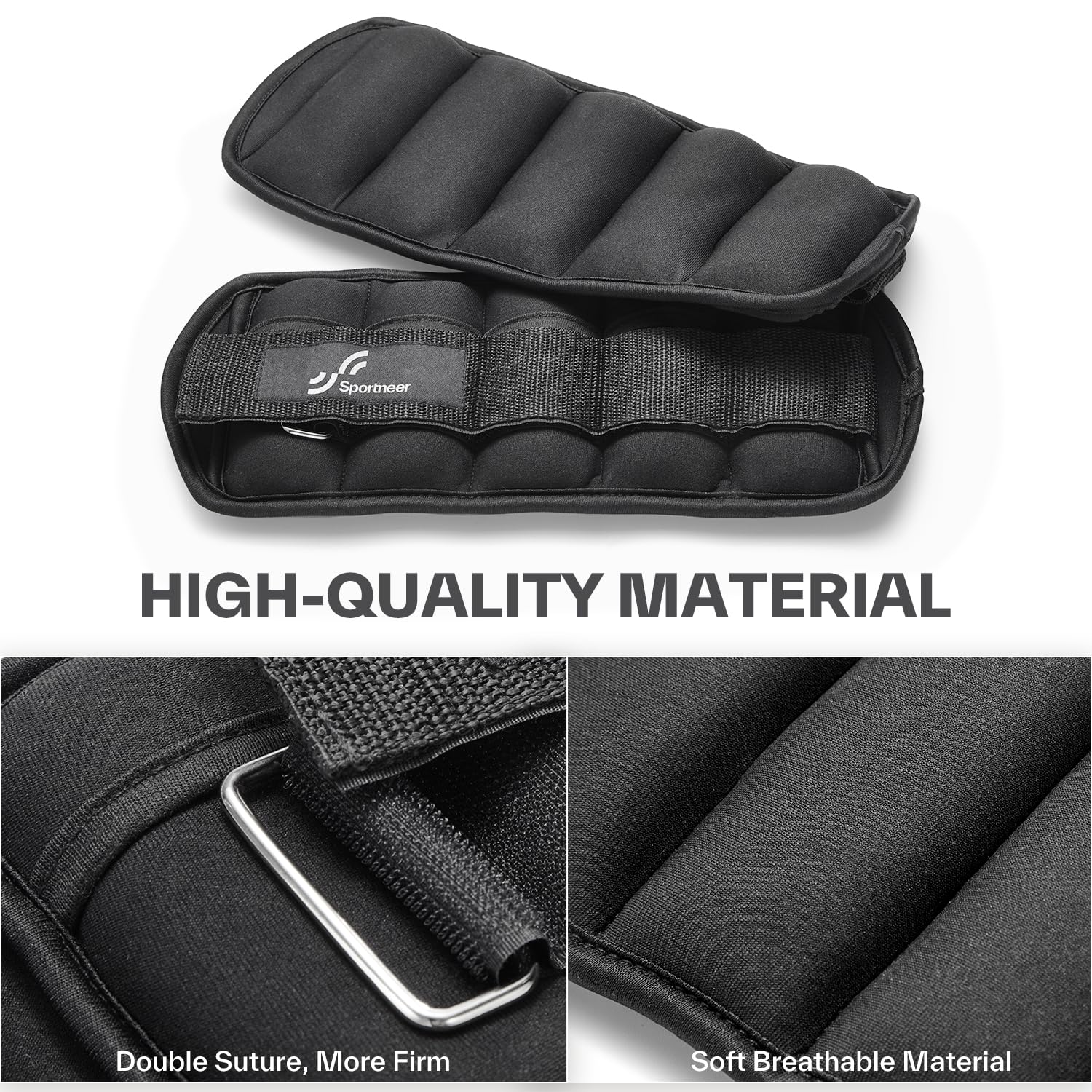 - QUALITY & COMFORT: The Sportneer ankle weights were made of neoprene exterior, reinforced stitching, sturdy outer trim and moisture absorbing material inside, soft, breathable and comfortable, you could feel its softness when hold in your hands