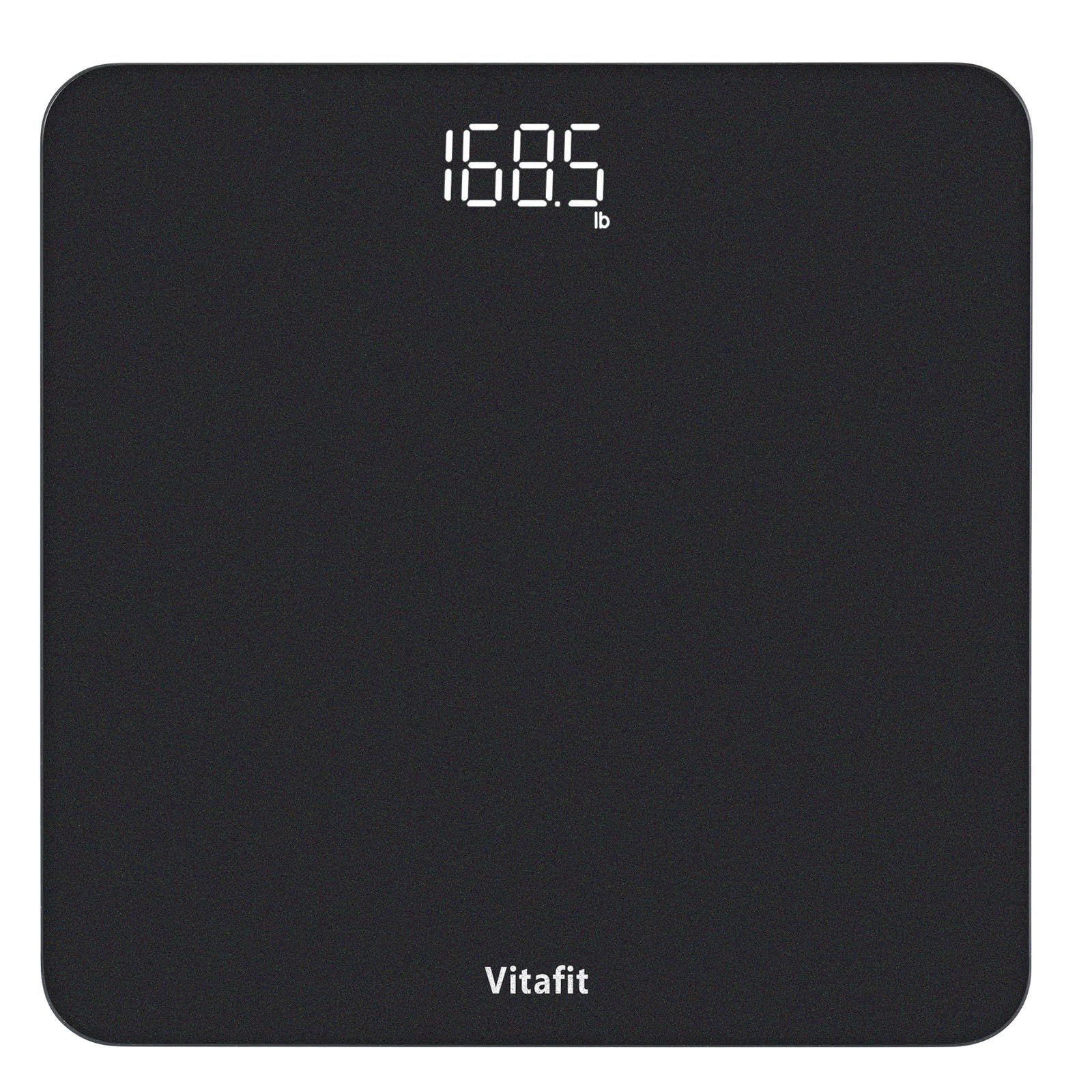 Vitafit Digital Bathroom Scale for Body Weight, Weighing Professional Since 2001, Clear LED Display and Step-On, 3*AAA Batteries Included, 400lb/182kg, Spray Silver Black
